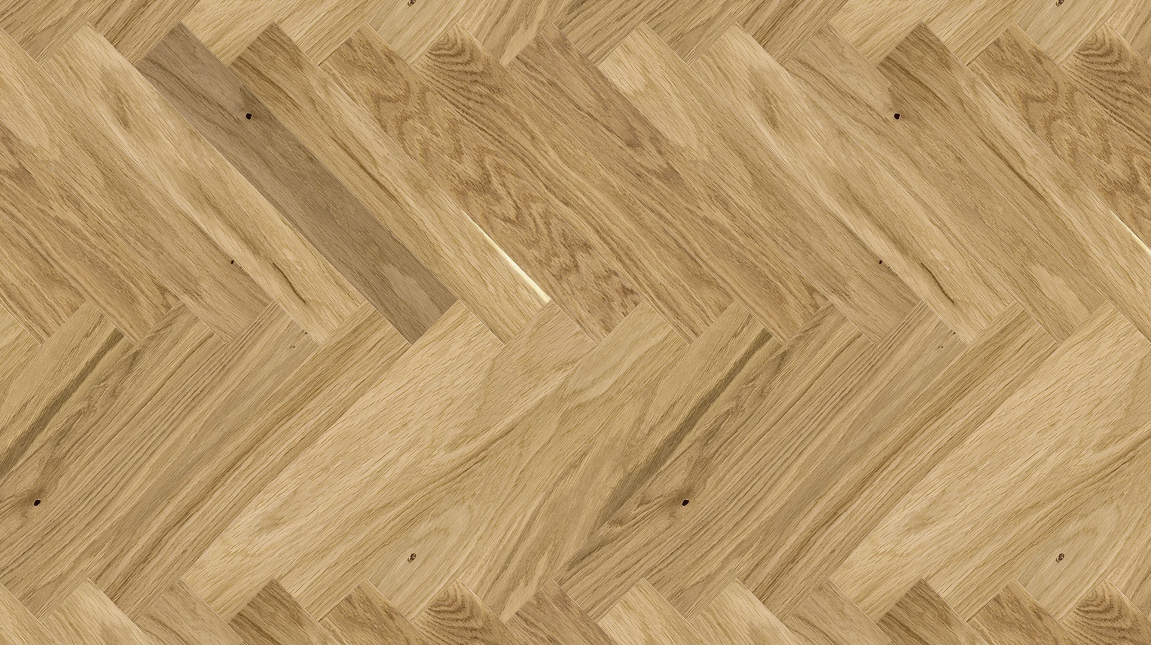 Un suelo de roble sutilmente acentuado con diversos detalles de madera. El cepillado realza el veteado natural y la profundidad del color, y el microbisel de cuatro lados realza su carácter. Está acabado en barniz mate.
